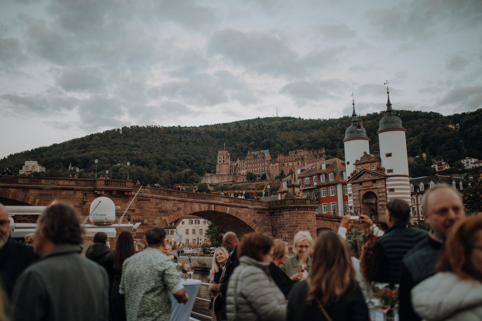 Falls Sie möchten, kümmern wir uns zusätzlich um ein unterhaltsames Rahmenprogramm an Bord Ihres Wahlschiffes. Nach der Schifffahrt haben Sie außerdem die Möglichkeit, auf der gegenüberliegenden Uferseite unserer Hauptanlegestelle auszusteigen und in unserer Neuenheimer Afterlocation weiterzufeiern.
